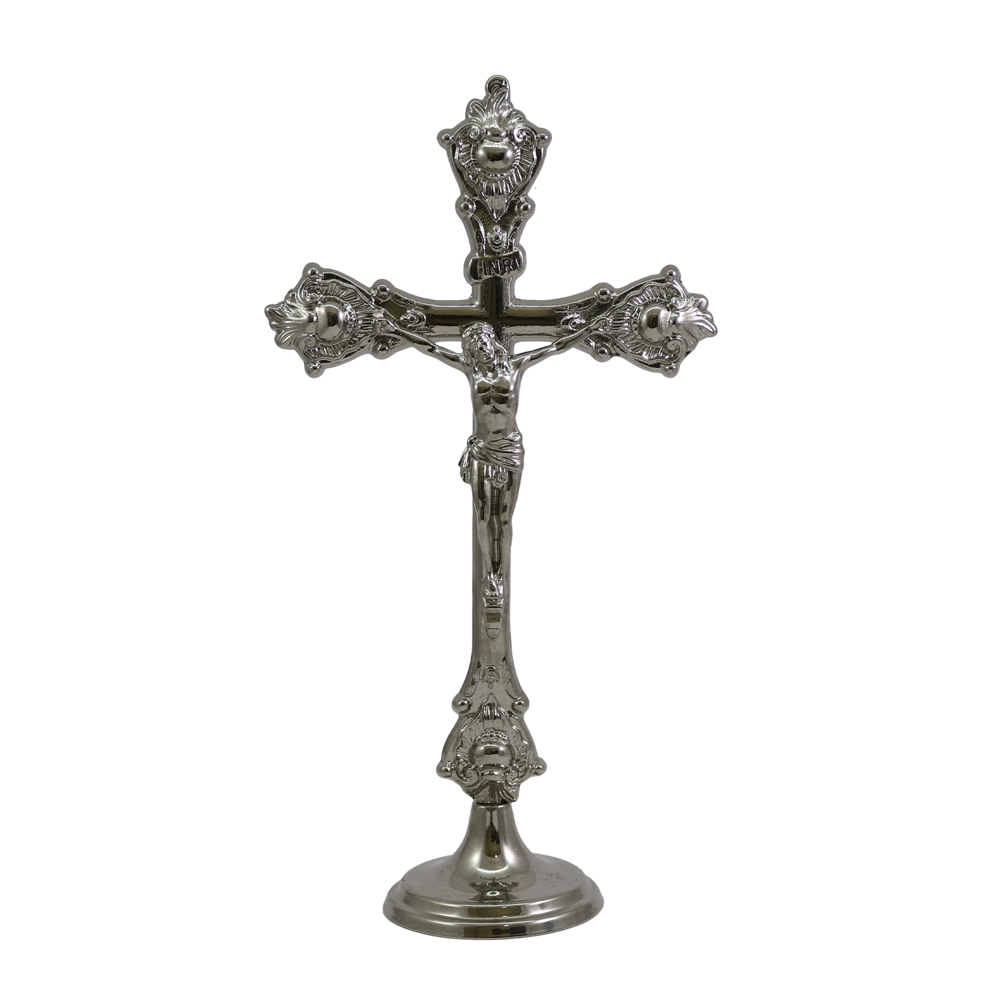 La Croce ha un altezza 36 cm. e il candeliere è alto 6 cm. con bossolo per candela a cera liquida da Ø 4 cm.