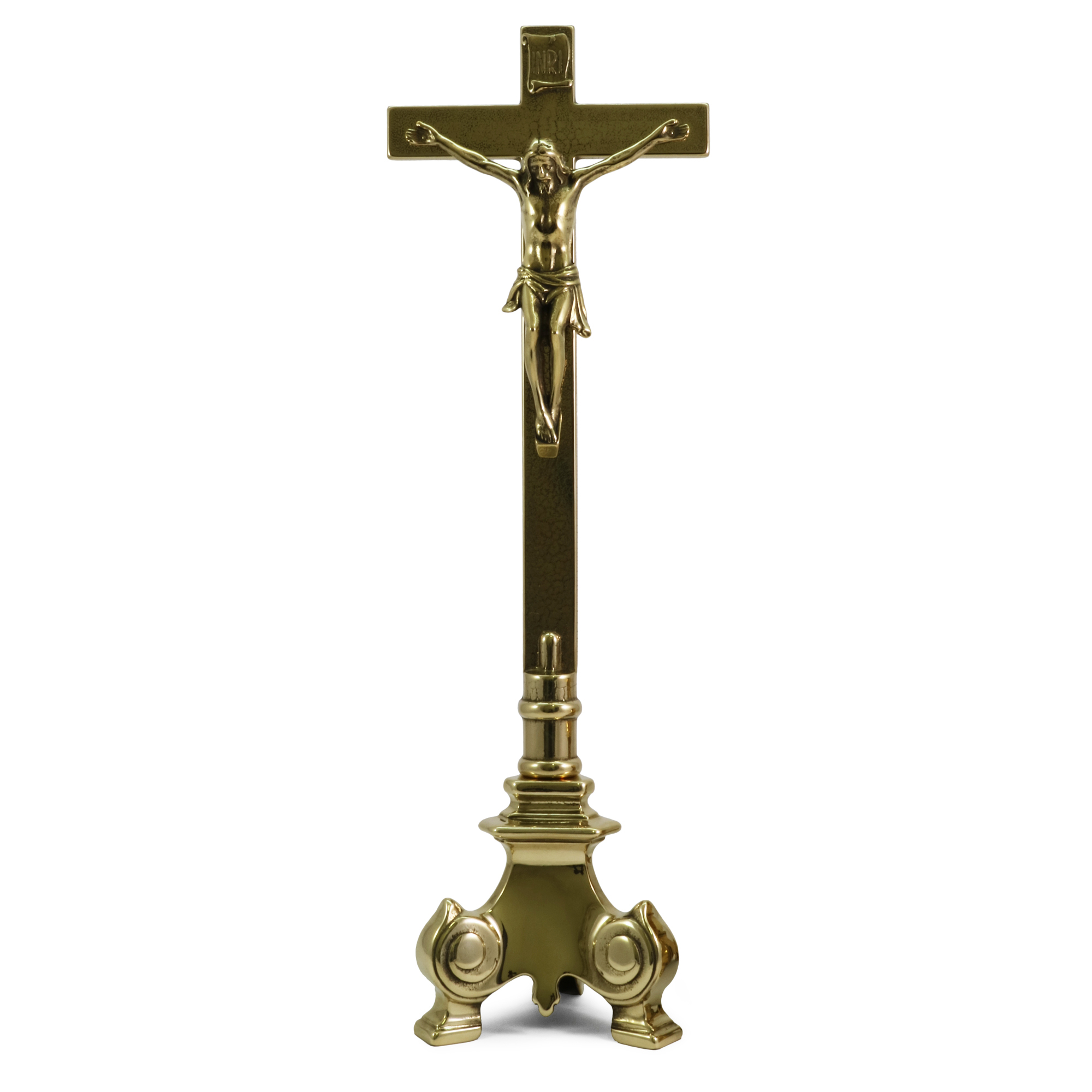 La Croce ha un altezza 53,5 cm. e il candeliere è alto 19 cm. con bossolo per candela a cera liquida da Ø 4 cm.