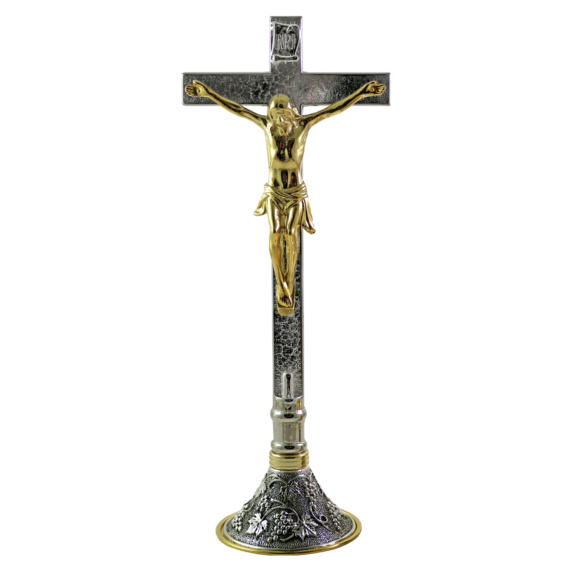 CROSS AND ALTAR CANDLESTICKS ON A GRAPE AND VINE BASE
