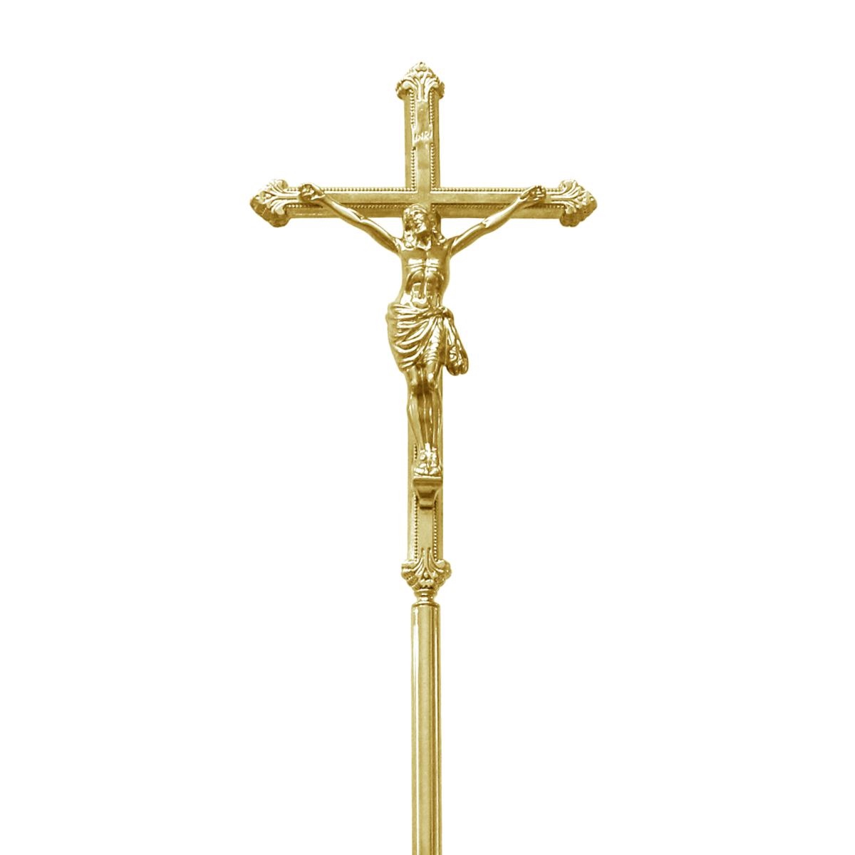 L'asta della Croce Processionale è formata da 3 pezzi di 50 cm. assemblabili tra di loro. Questo permette di smontarla facilmente per trasportarla o riporla in un trolley o una valigia.
