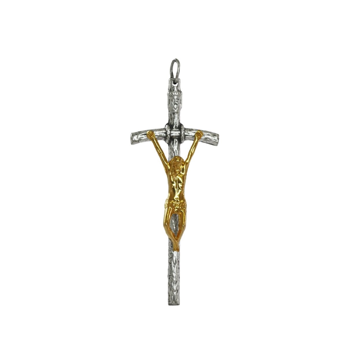 Croce Pastorale argentata con Cristo dorato. Dotata di anella per portarla al collo.