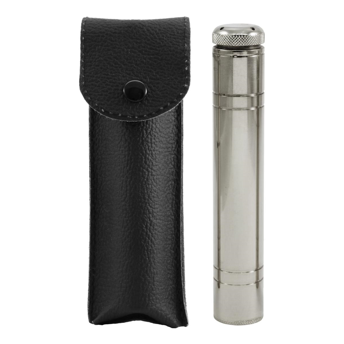 Custodia in Vera Pelle completa di asperges in ottone tono argento, con tappo svitabile per una facile ricarica.