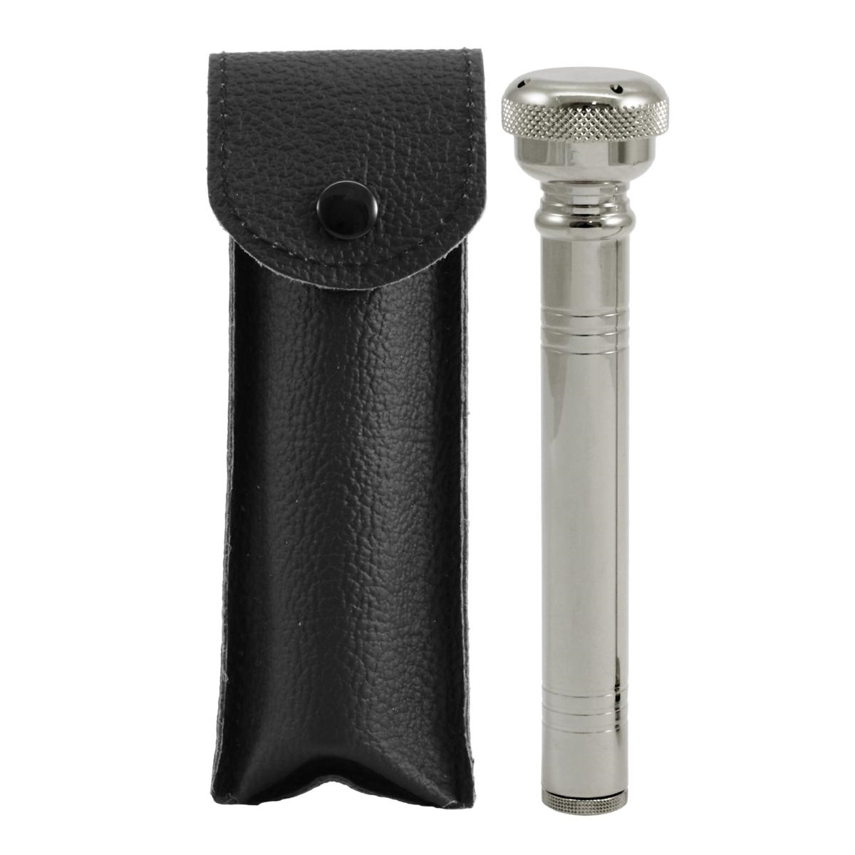 Custodia tascabile in Pelle nera, completa di Asperges per Benedizione in ottone tono argento, di misura 11,5 cm.
