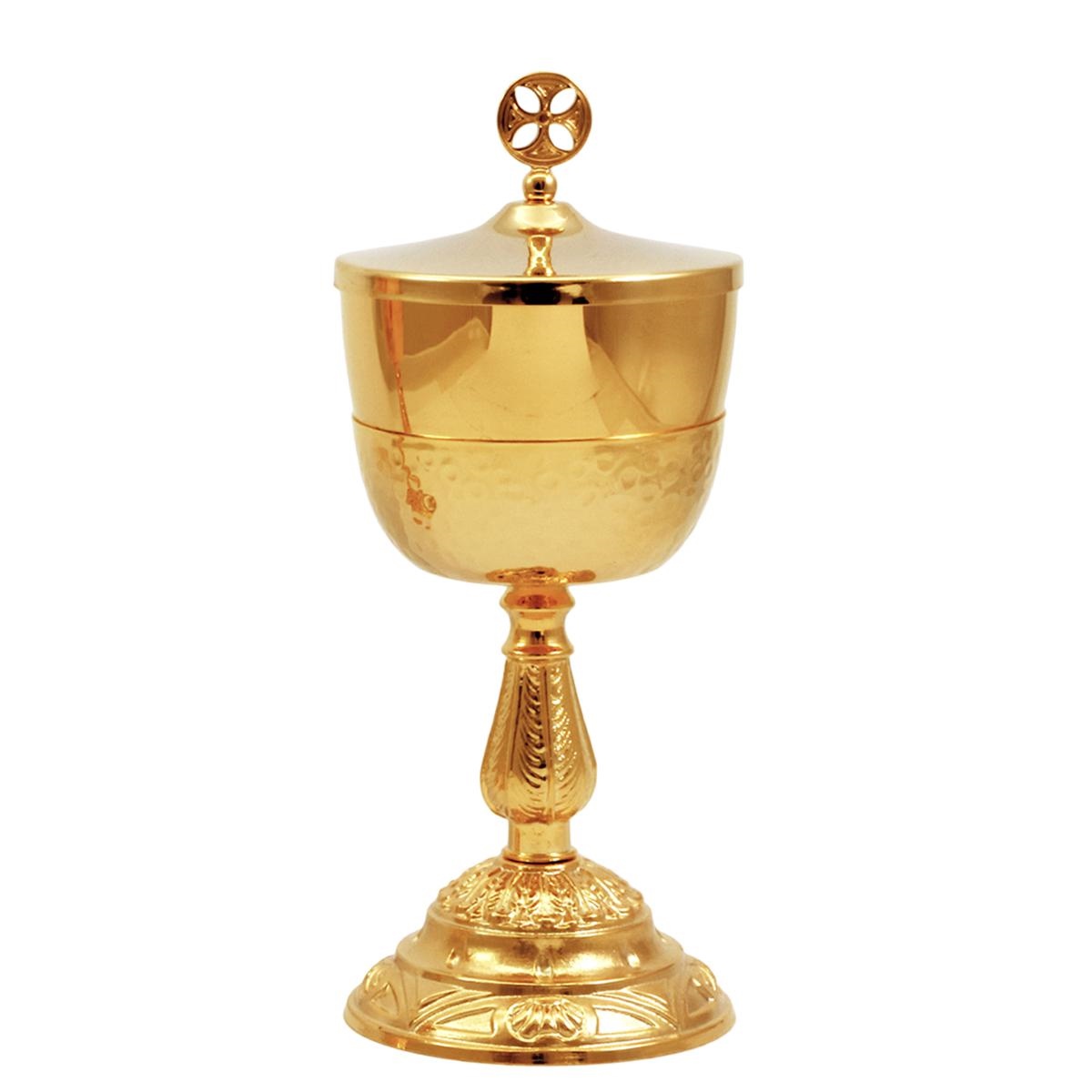 GOLD PLATED TRAVEL CIBORIUM WITH DECORATED BASE