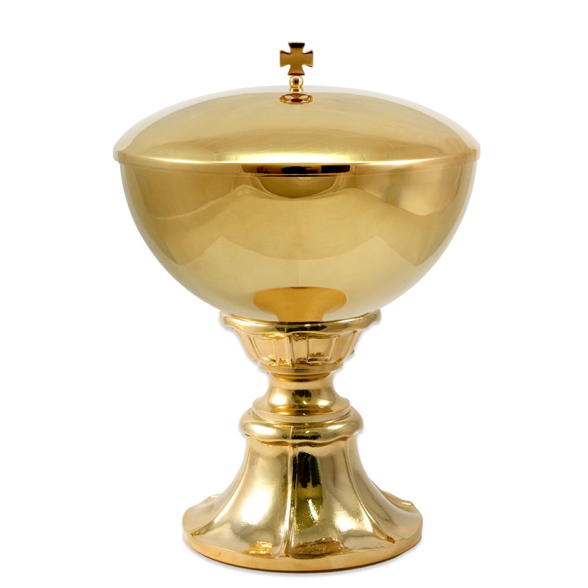 Pisside in ottone dorato per concelebrazione su base in fusione.