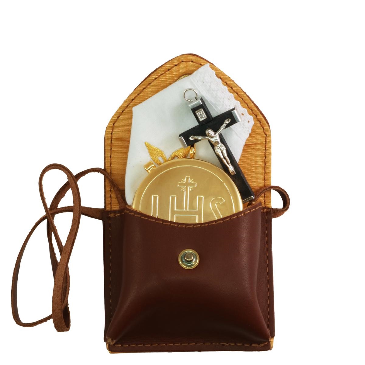 Porta teca in Cuoio. Dotato di pratico cordino per portarlo al collo.