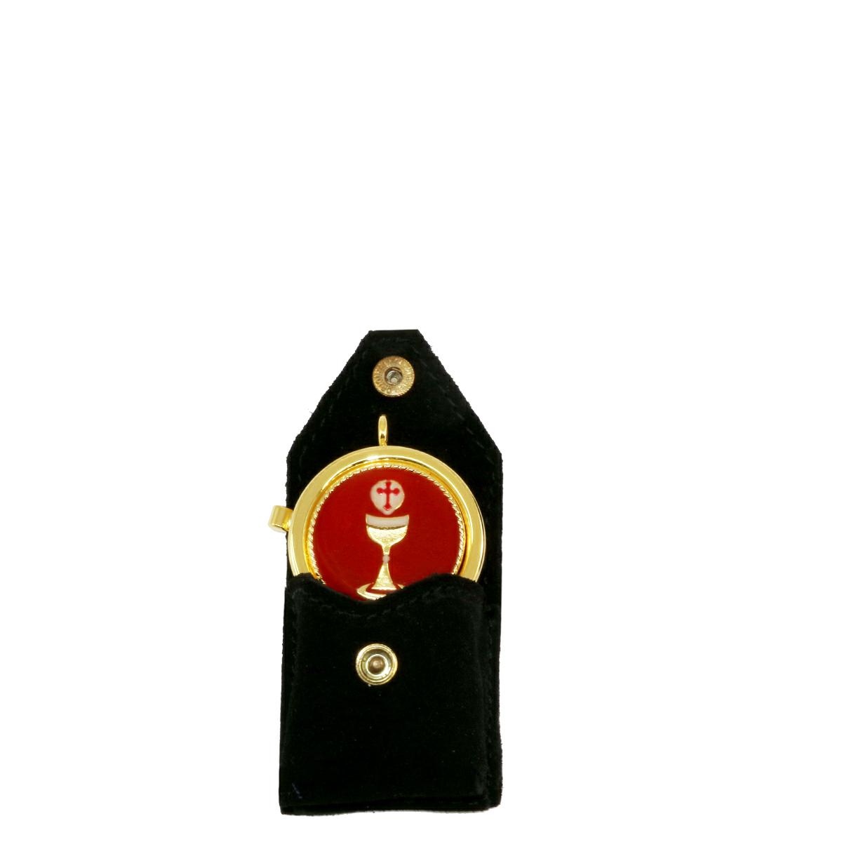 -Small Pyx made of 24k gold plated with enamelled plaque.