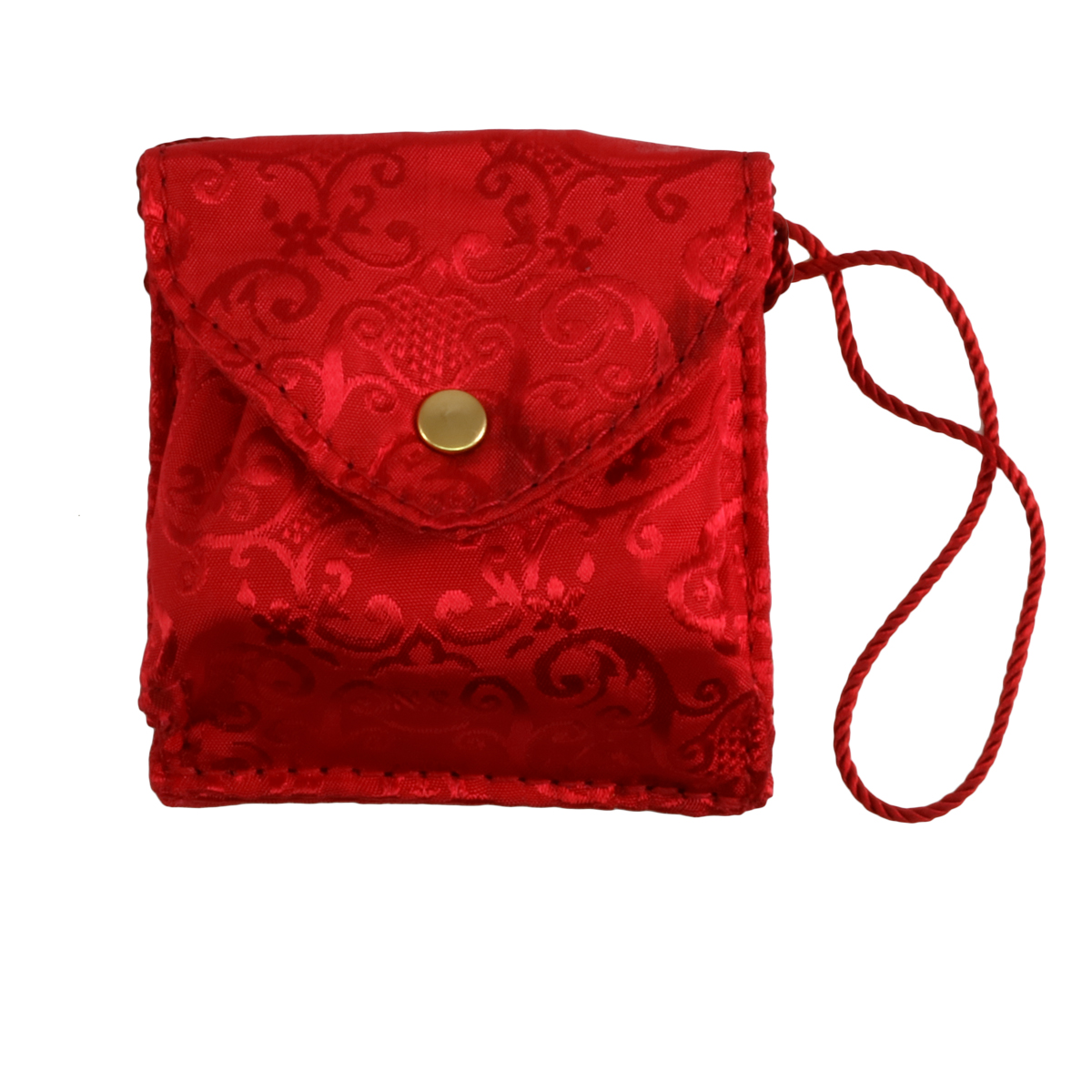 Red satin pyx case, complete with a gold plated brass Eucharistic pyx with a hand-enamelled Alpha and Omega decorative plaque. The pyx has a diameter of 5.3 cm and holds approximately 12 hosts. Thanks to its practical cord, it can be easily worn around the neck. Dimensions: 6.5 x 7 cm.