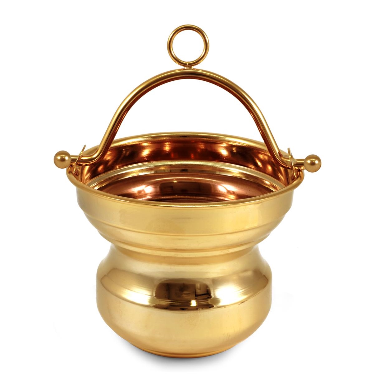 Secchiello per acqua Santa in ottone dorato . Dotato di pratica fodera in rame, completamente estraibile.