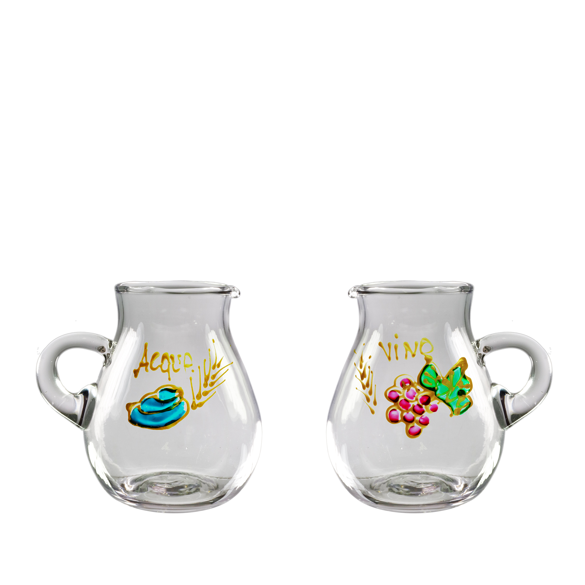 Brocchette in vetro modello "Bologna" con decoro Acqua e Vino dipinto a mano.