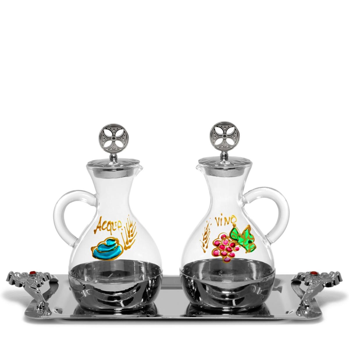 Brocchette in vetro modello "Palermo" con decoro Acqua e Vino dipinto a mano.