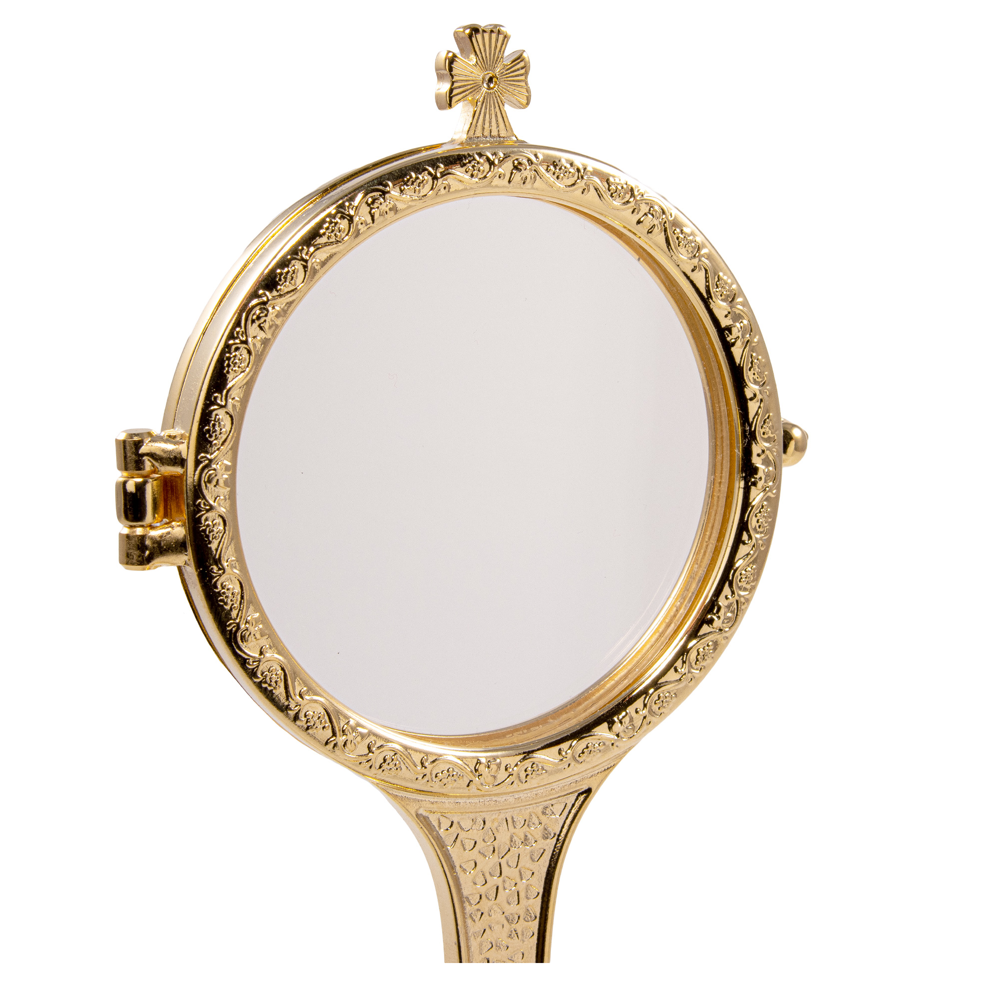 Teca per esposizione dell' Ostia magna in fusione dorata su base semplice.La base è in finitura dorata.