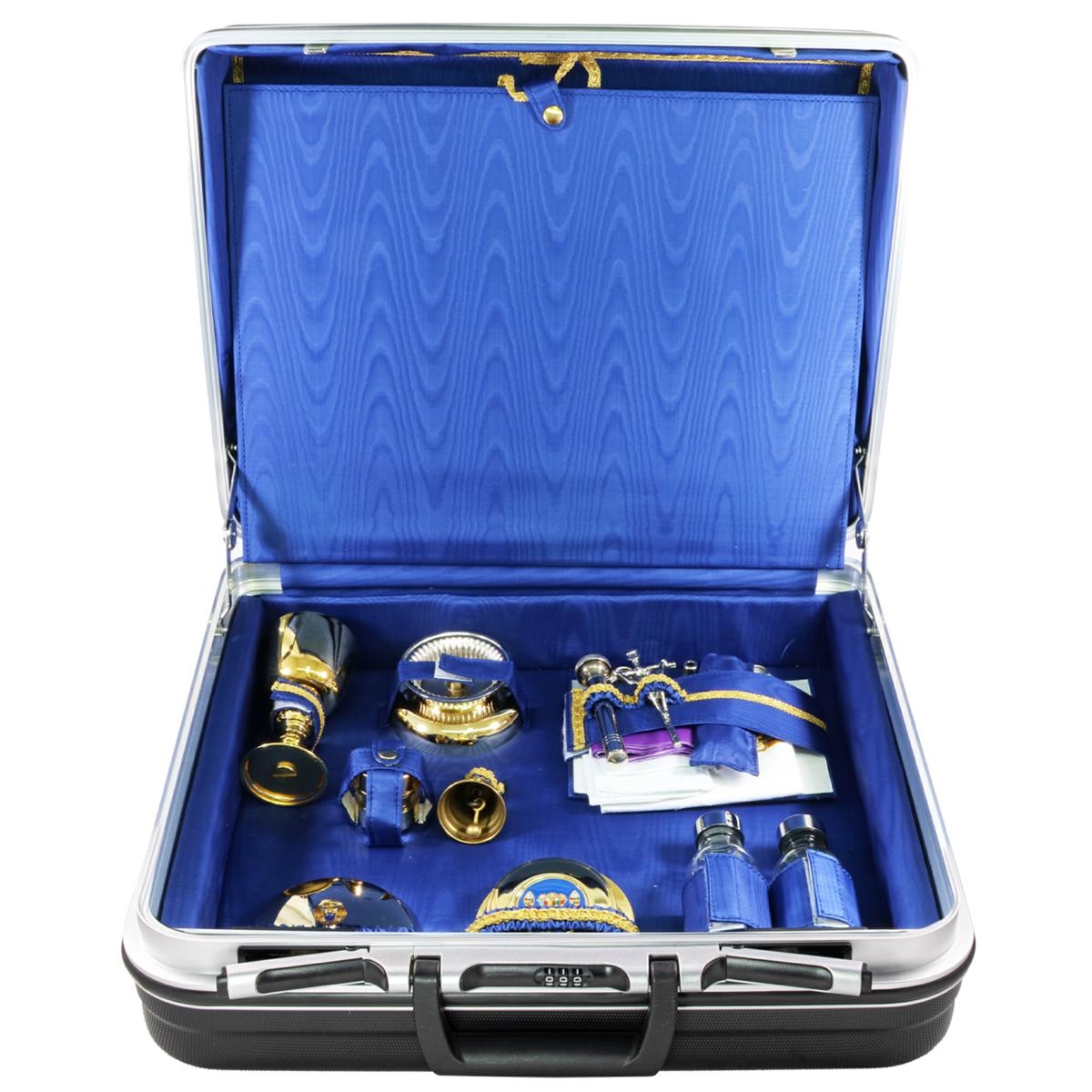 Valigia foderata internamente in Raso Blu e completa di tutto il necessario per la Celebrazione.